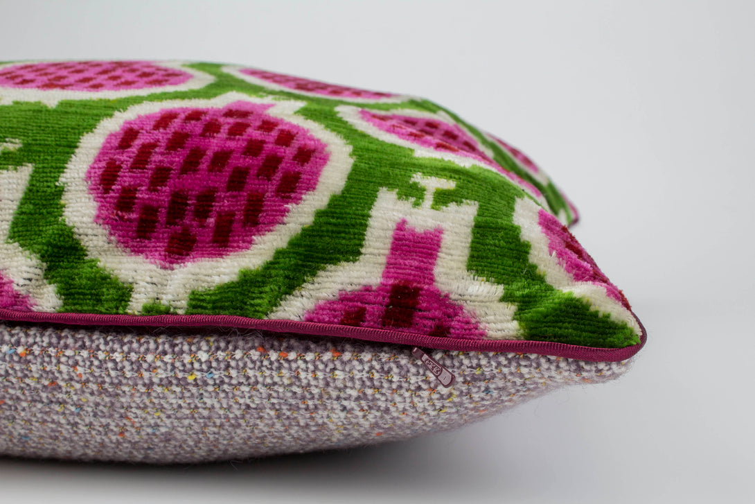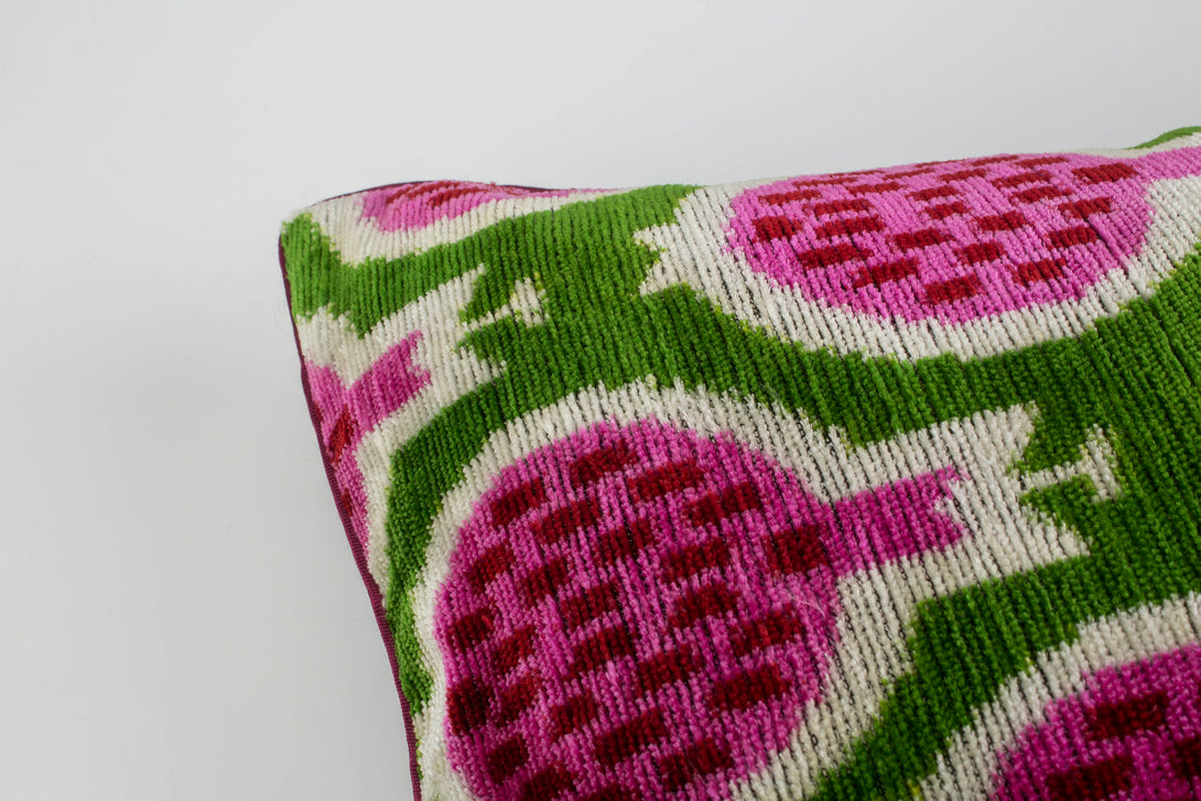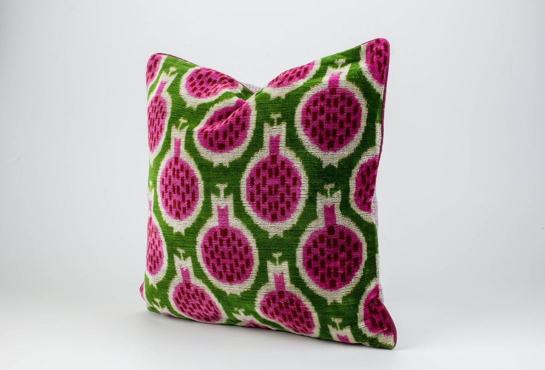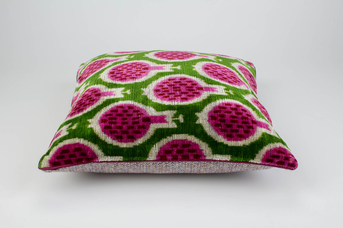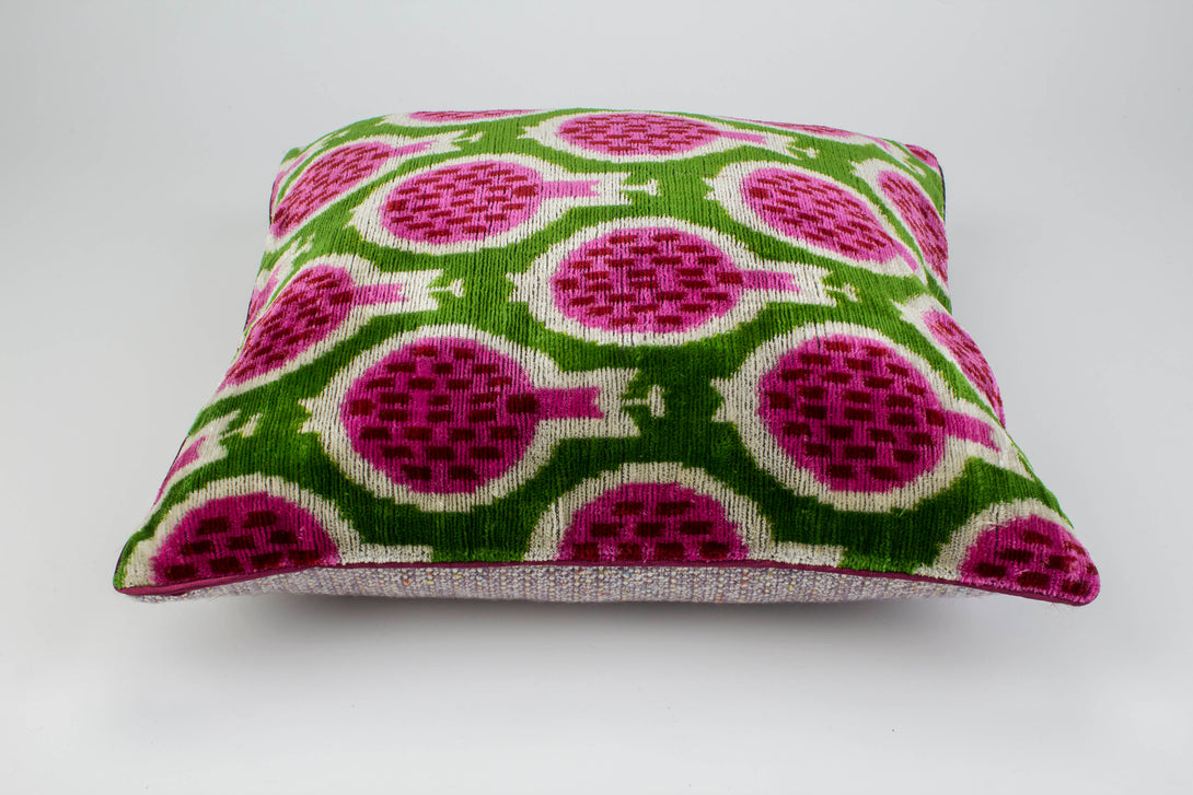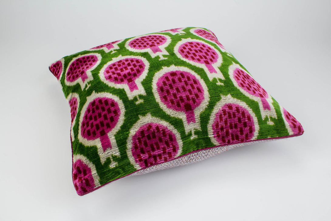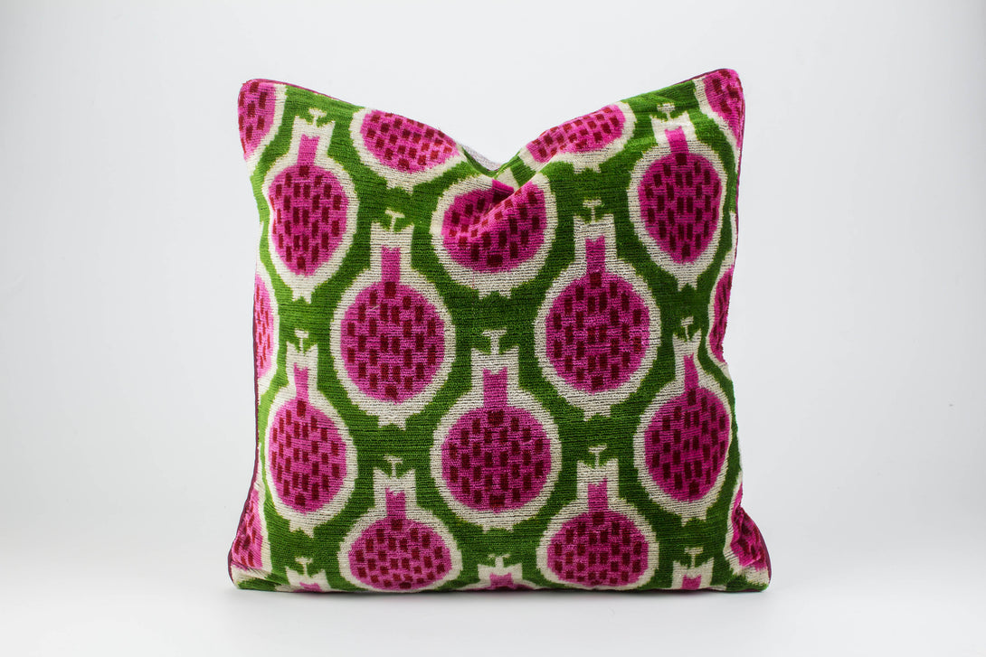 실크 벨벳 이캇 쿠션 - 천연 수제 우즈벡 이캇 원단으로 만든 핸드메이드 벨벳 이캇 베개 커버, 베개 커버