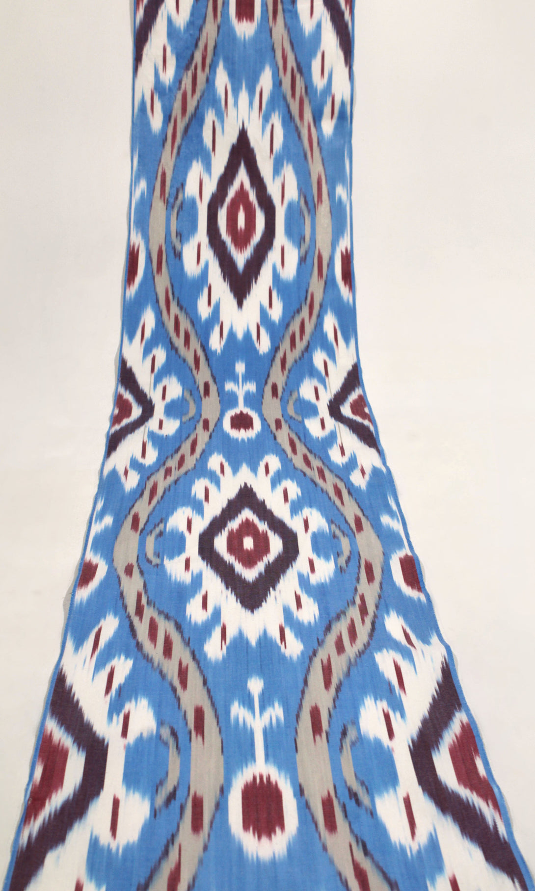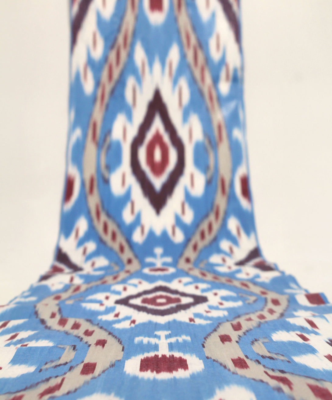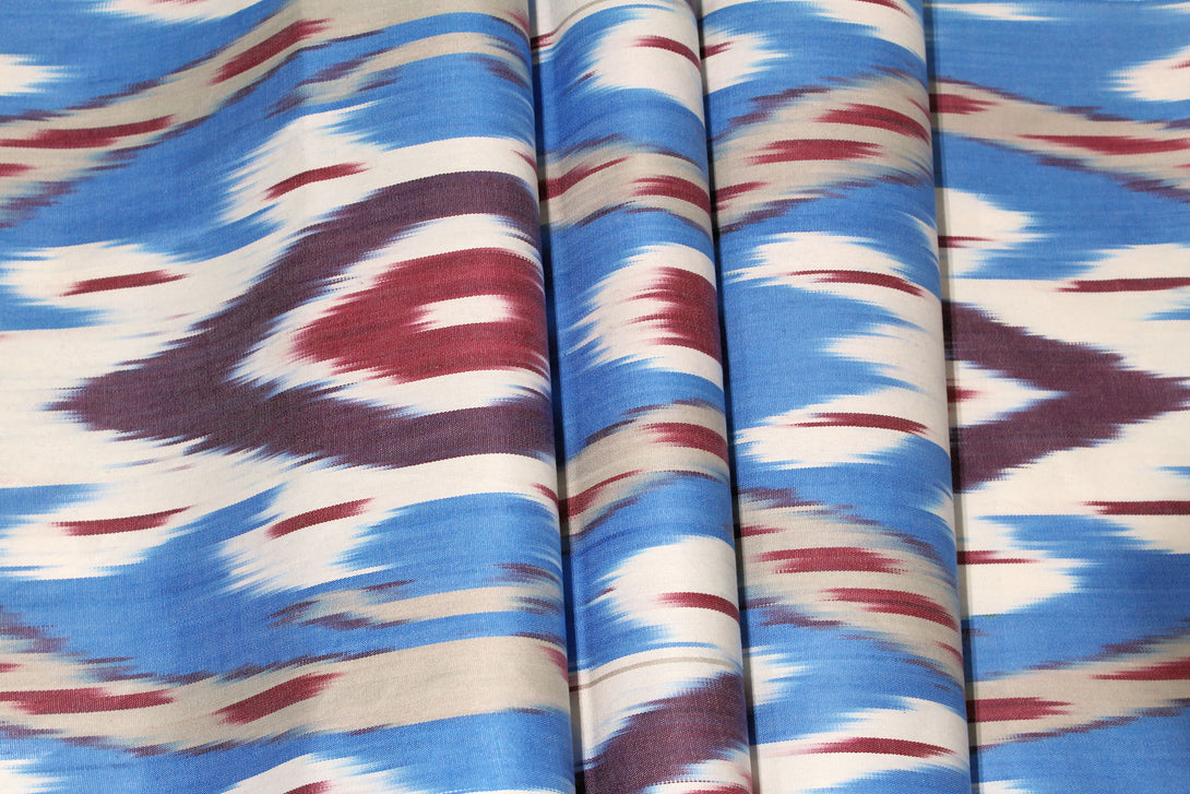 De lekre Ikat-tekstilene er kulturelle landemerker i Usbekistan og Sentral-Asia, og er internasjonalt anerkjent for sine uendelige unike design. Den rike tradisjonen for Ikatmønster starter med å håndfarge trådene. Når de er ferdig, plasseres de i en håndvev, der en mesterhåndverker gradvis designer mønster basert på den kreative arven til antikkens Bukhara, Samarkand og Khuva. I kvalifiserte hender kan Ikatmønster ta utallige antall utrolige former og design. Teknikken som brukes skaper en unik variasjon i design, gjennom energifulle kombinasjoner av farger, former og mønster som passer til en hver smak og anledning.