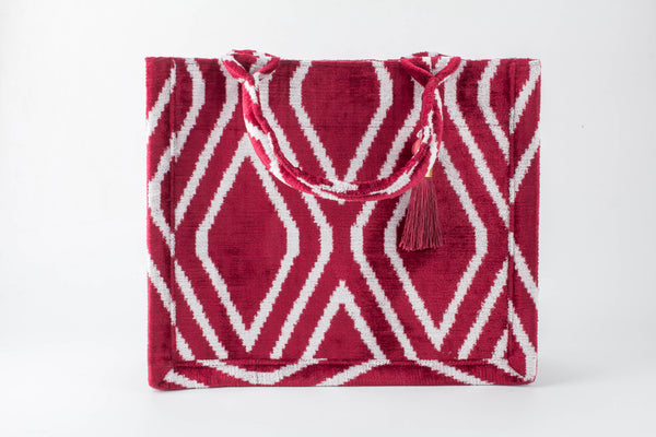 由纯天然丝绒制成的布哈拉华丽托特包,采用原装手工编织的乌兹别克伊卡特面料。